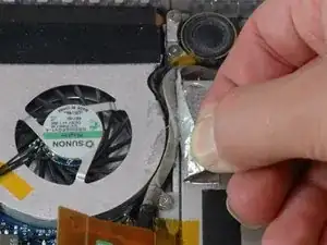 Отклейте серебристую фольгированную ленту между вентилятором и оптическим приводом.