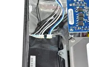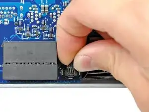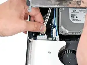 Разъем SATA на большинстве iMac обычно прилипает к своему гнезду на логической плате. Если у вас возникли трудности с отключением SATA-кабеля, вставьте металлическую лопатку или любой другой тонкий инструмент в зазор между разъемом SATA и его гнездом и прокрутите ручку лопатки, чтобы безопасно отделить две части.