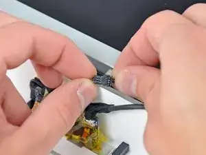 Поднимите разъем кабеля данных дисплея с материнской платы за его черную вкладку.