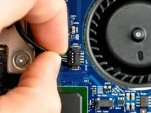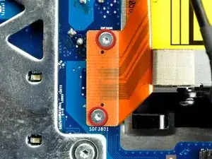 Удалите два винта T6 Torx длиной 5 мм, крепящих разъем кабеля данных дисплея к материнской плате.