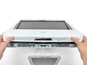 Чтобы поднять переднюю рамку с iMac, одновременно:
