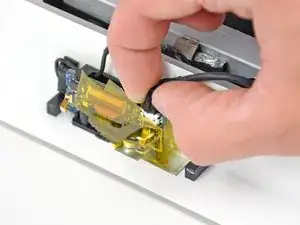 Удалите один винт T10 Torx, крепящий левый динамик к заднему корпусу.