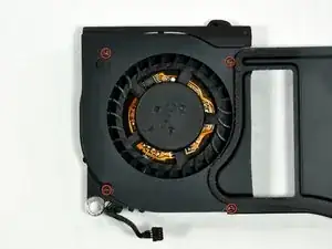 Снимите четыре винта Phillips 2,5 мм, крепящие вентилятор к узлу радиатора.