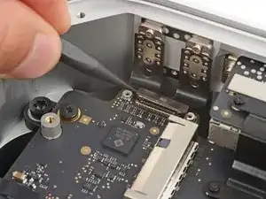 Используйте отвертку Torx T20, чтобы удалить четыре винта длиной 12 мм, закрепляющих сборку логической платы.