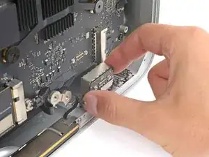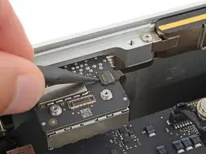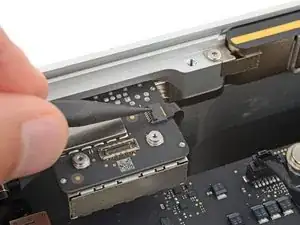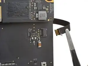 Используйте пинцет, чтобы осторожно вытянуть кабель прямо из его гнезда и отключить его.