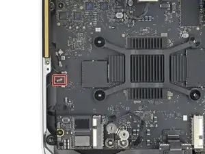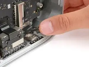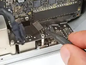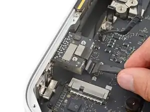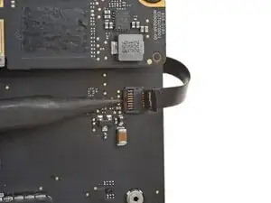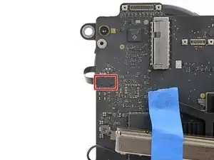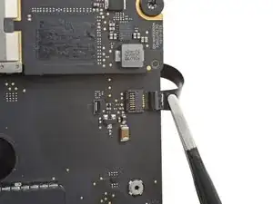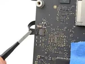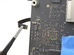 Используйте кончик лопатки или чистый ноготь, чтобы поднять запирающую крышку на ZIF-коннекторе кабеля вентилятора ZIF-коннектор.