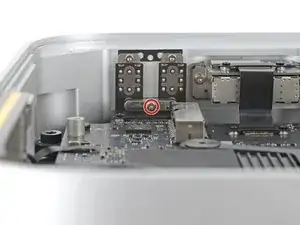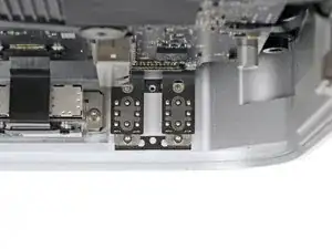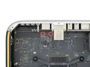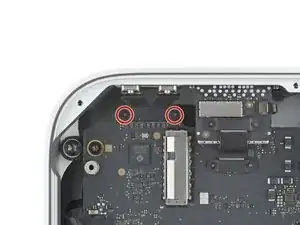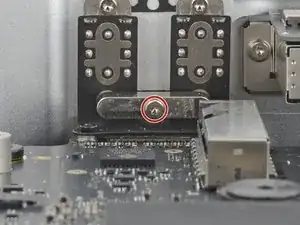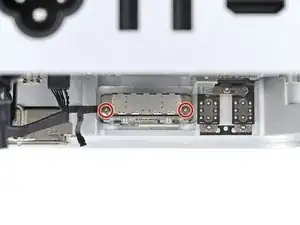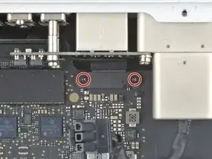 Используйте отвертку Torx T5 для удаления двух винтов длиной 5 мм, которые крепят порты USB-C.