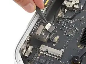 Используйте лопатку, чтобы приподнять и отключить кабель платы Ethernet от нажимаемого соединителя на логической плате.