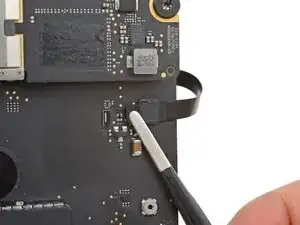 Используйте плоский конец лопатки, чтобы приподнять и отключить кабель пресс-коннектора картридера от логической платы.