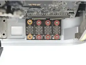 Эти винты могут быть труднодоступны. Если вы не можете правильно вставить отвертку, используйте гибкое удлинение, чтобы избежать срывов винтов или повреждения логической платы.