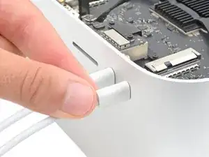 Свободной рукой зажмите головку разъёма порта питания, чтобы отсоединить его, и потяните прямо вниз, чтобы разъединить кабель.