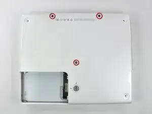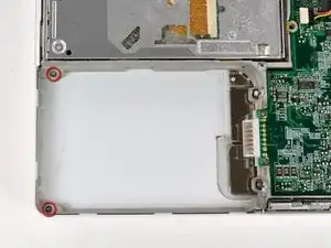 Удалите два винта Phillips 3 мм внутри левого края лотка батареи.