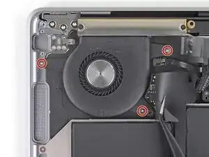 Используйте отвертку Torx T5, чтобы снять три винта 2,7 мм, фиксирующие вентилятор.