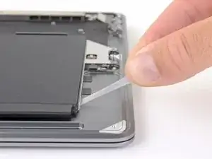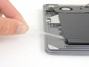 Если трудно отделить клей, слегка разогрейте его iOpener или феном. Не перегревайте аккумулятор.