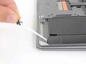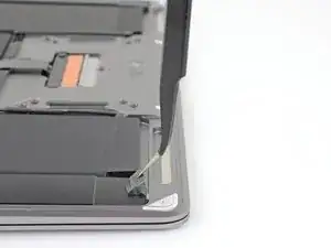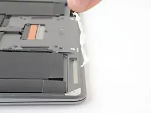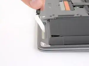 Используйте плоский конец лопатки, чтобы поднять маленький фиксирующий язычок на ZIF-разъёме трекпада.