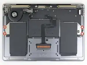 Используйте отвёртку T5 Torx, чтобы отвинтить следующие винты, удерживающие трекпад: