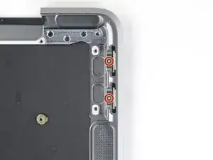 Используйте отвёртку T4 Torx, чтобы отвинтить два винта 2.9 мм, удерживающих плату USB-C.