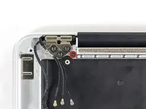Удалите последний оставшийся винт Torx T8, фиксирующий дисплей к верхней части корпуса.
