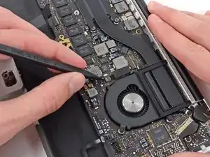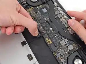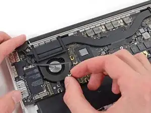 Поднимите и снимите кабель платы ввода/вывода с MacBook Pro.