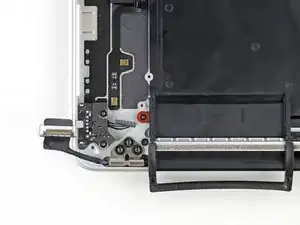 Отсоединить разъем MagSafe 2 может быть сложно. Если вы снимаете плату логики только временно, например для замены аккумулятора, может быть проще просто выкрутить два винта T5 Torx длиной 2,5 мм, крепящие плату питания MagSafe, и затем вынуть плату логики вместе с платой MagSafe.