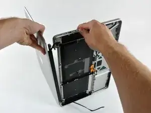 Отделите дисплей от верхней части корпуса, следя за тем, чтобы кронштейны или кабели не зацепились.