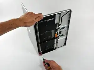 Удалите последний оставшийся винт Torx 6 мм, крепящий дисплей к верхней части корпуса.