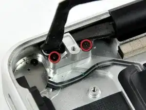 Удалите два винта Phillips 8 мм, крепящих кронштейн кабеля камеры к верхней части корпуса.