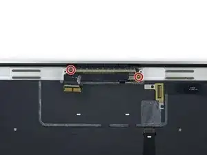 Уберите два винта T5 Torx длиной 3,3 мм, фиксирующие сборку шлейфа дисплея.