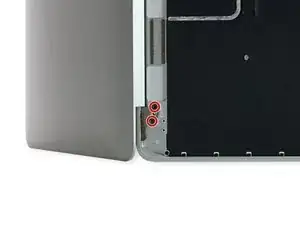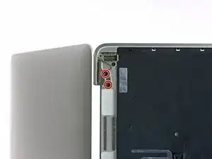 Уберите четыре винта T8 Torx длиной 4,8 мм, фиксирующие петли дисплея.