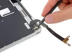 Используйте лопатку, чтобы аккуратно поднять фиксирующий язычок ZIF-разъёма шлейфа трекпада.