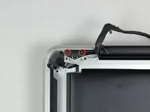 Удалите последний оставшийся винт Torx 6 мм, фиксирующий дисплей к верхней крышке.