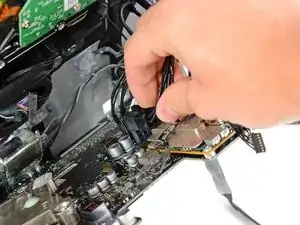 Возьмитесь за разъем кабеля датчика температуры GPU и потяните его прямо вверх, чтобы вынуть из гнезда на плате логики.