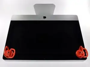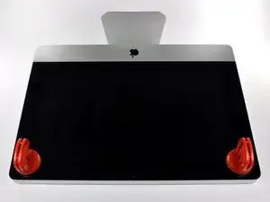 Оттяните стеклянную панель от нижней кромки iMac и аккуратно отложите в сторону.
