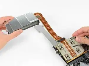 Слегка приподнимите радиатор GPU и выньте плату GPU из её гнезда на плате логики.