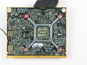 Удалите четыре винта T8 Torx длиной 6,5 мм, крепящие радиатор GPU к GPU.