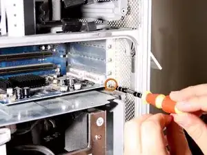 С помощью отвертки Phillips #1 открутите винт, находящийся рядом с видеокартой.