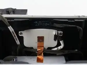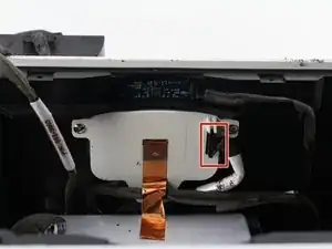 На этом этапе динамик всё ещё прикреплён несколькими разъёмами, поэтому полностью снять его нельзя.