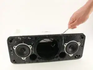 Отсоедините последнее соединение, которое соединяет динамики с блоком питания.