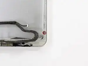 Выкрутите четыре винта Phillips #00 длиной 4,0 мм, крепящих антенну AirPort к задней рамке дисплея.
