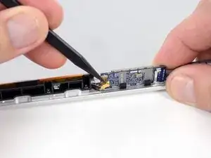 Выкрутите один винт Phillips #00 длиной 1,9 мм, крепящий кабель камеры.