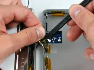 Отогните три кромки крышки платы антенны и снимите её с платы антенны.