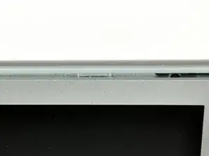 В этот момент защёлки на левой и правой кромках задней рамки дисплея должны быть освобождены от выступающих алюминиевых защёлок передней рамки. Если они не освобождены, используйте лопатку, чтобы поддеть их и провести за переднюю рамку.