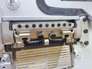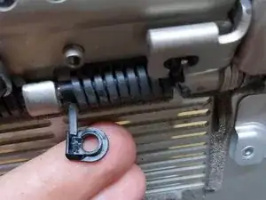 Подставка iMac внезапно перестала удерживать экран? Вы услышали громкий «хлопок», и экран полностью опустился? Скорее всего, сломалась петля iMac. А точнее, одна или обе слабые пластиковые детали (колпачки), удерживающие пружину под натяжением.