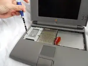 Сначала необходимо удалить пять винтов T8 Torx, которые крепят жесткий диск к внутренней раме.