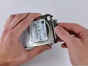 Немного приподнимите жёсткий диск со свободного конца и потяните его прямо от разъёма.