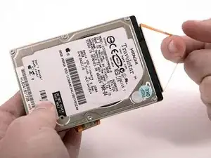 Снимите металлическую фиксирующую скобу с жёсткого диска и отложите в сторону.