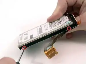 Выкрутите два винта Phillips, крепящих жёсткий диск к металлическому каркасу.