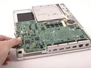 Выкрутите два винта Phillips, крепящие плату DC-In.