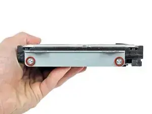 Удалите два винта T10 Torx длиной 9,2 мм, фиксирующие кронштейн жёсткого диска к задней крышке.