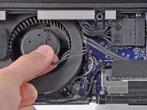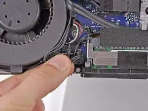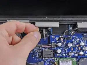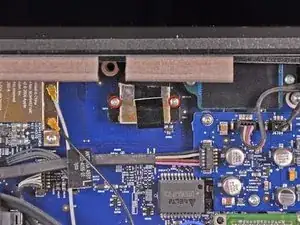 Снимите два винта T6 Torx, 5,3 мм, крепящих шлейф дисплея к материнской плате.